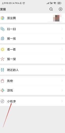 2、之后再在发现里面,找到小程序按钮,点击进去。
