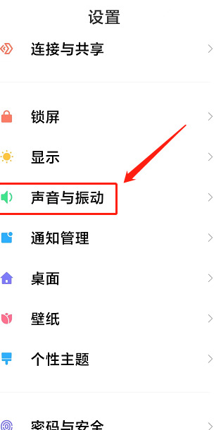 第二:进入设置,找到声音和振动选项,点击进入,如图所示;