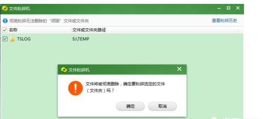 第五:会看到右下角有一个粉碎的命令按钮,点击确定,会弹出一个彻底删除确认框,点击确认就可以了。