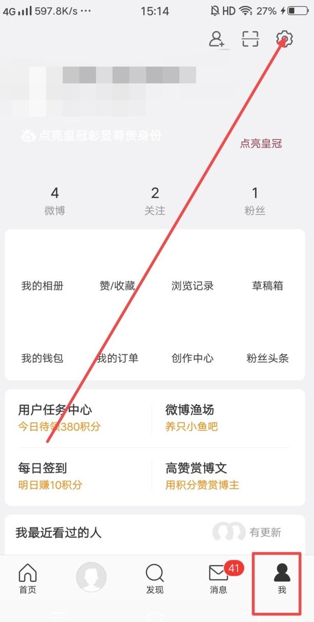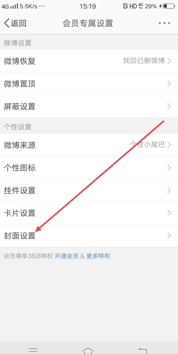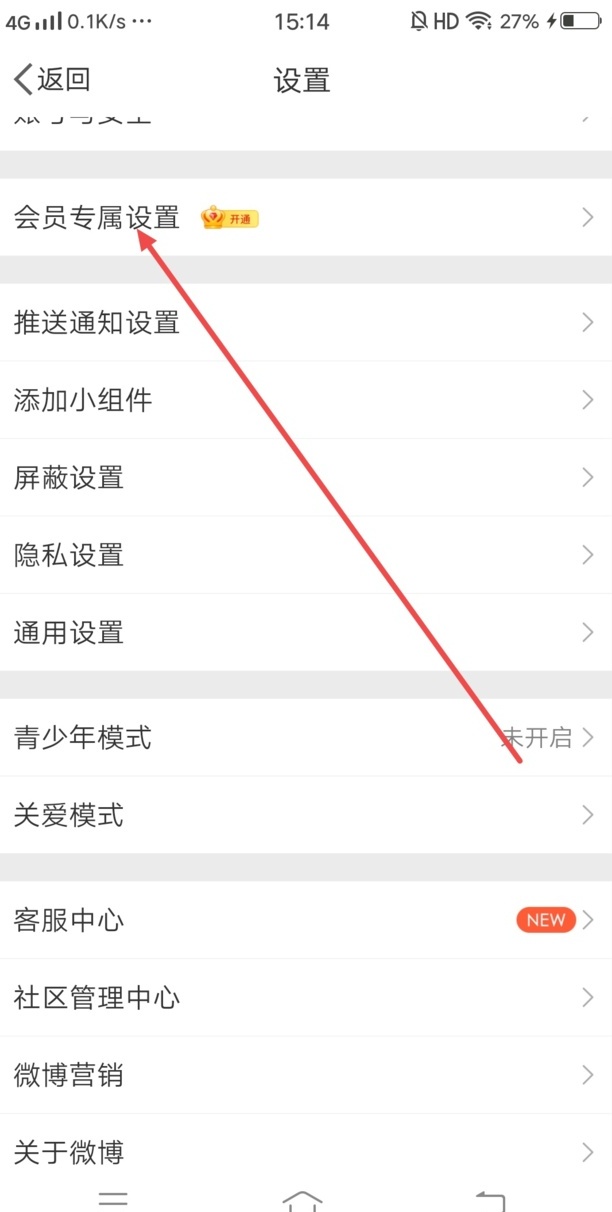 打开微博,我的页面点击设置按钮,打开会员专属设置