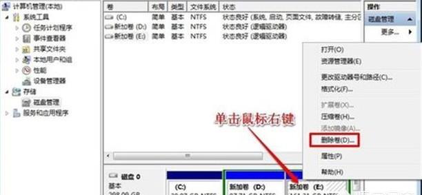 3、将鼠标移动到一个磁盘上,单击右键,选择“删除”