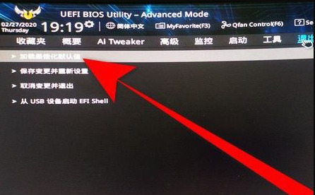 点击退出后,再点击加载最佳化默认值。