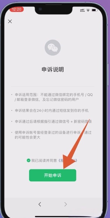 在申诉说明的页面中,勾选同意,点击页面中的开始申诉。