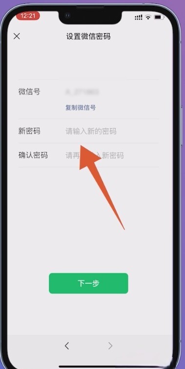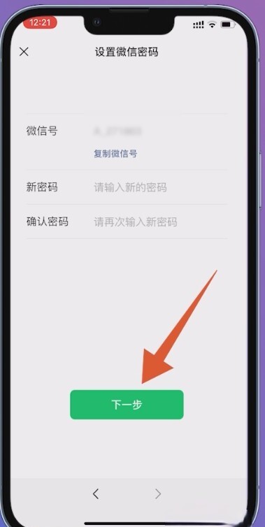 当申诉成功后,点击下一步,接着输入自己的新密码。