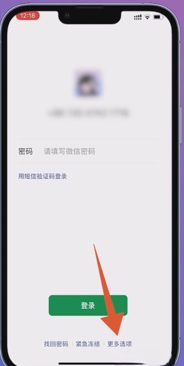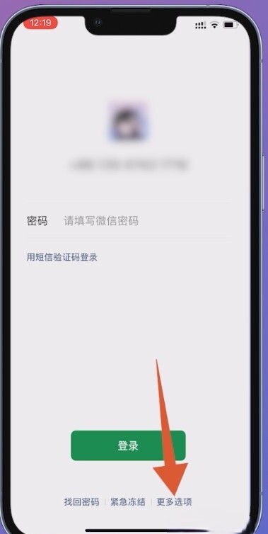 在微信的登录页面,找到页面中的更多选项,点击它,弹出窗口。
