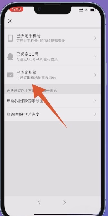在新的页面中,点击已绑定邮箱,接着输入邮箱地址,轻点下一步。