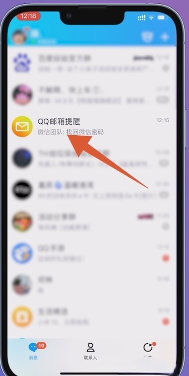接着进入到你的qq消息页面,点击页面中的qq邮箱提醒。