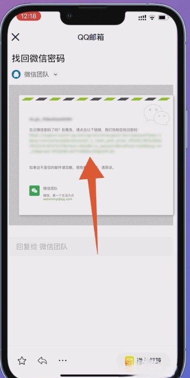 切换到新的页面后,点击页面中的微信团队,接着打开页面中的链接。
