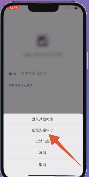 在微信的登录页面,点击右下方的更多选项,选择前往安全中心。