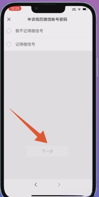 短信发送成功后,根据是否记得微信号进行点击,选择下一步。