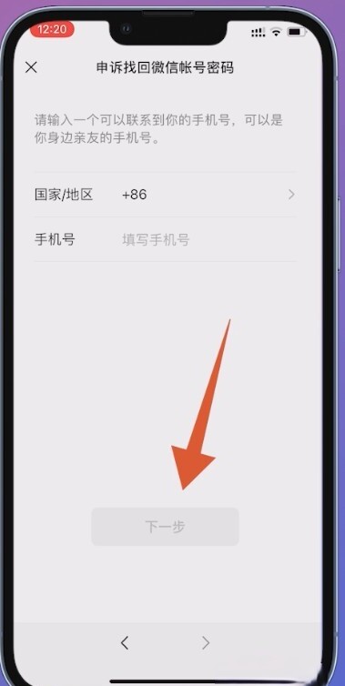 跳转到下一个页面后,输入手机号,再次点击下一步。