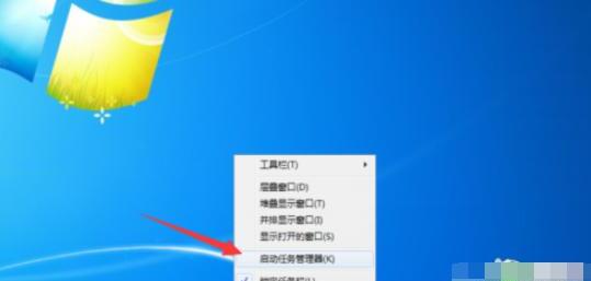 1、如果我们的电脑在运行PS的过程中突然卡住了,可以用鼠标在桌面的底部右键一下,并点击“任务管理器”。