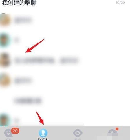 首先进入手机QQ,选择联系人选项,再选择管理的群聊。