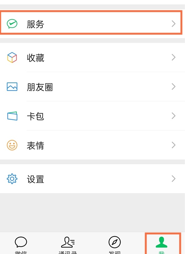 以华为p40为例,点击微信右下角的我,再点击服务。