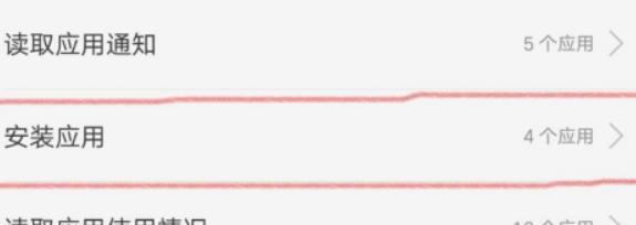 4、进入到权限隐私的设置界面后,找到“安装应用”选项。