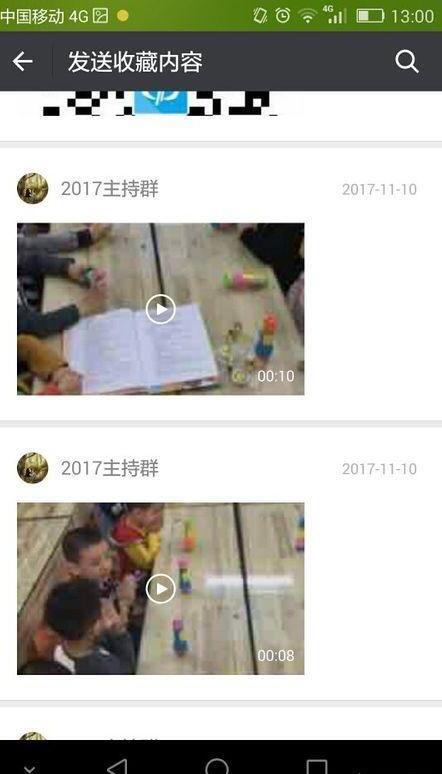 4、你也可以从收藏中发送,如果视频是在收藏里备的话,则可以点击收藏发送。如图: