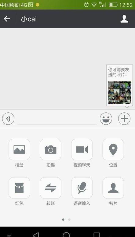 1、打开微信客户端。先打开你要发送的人,然后右下角+号的地方。如图:
