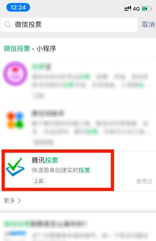 第三:在搜索栏搜索“腾讯投票”,点击打开腾讯投票小程序。