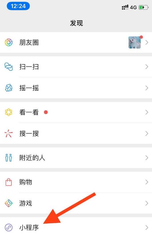 1、打开手机微信之后,点击“发现”页面的“小程序”。