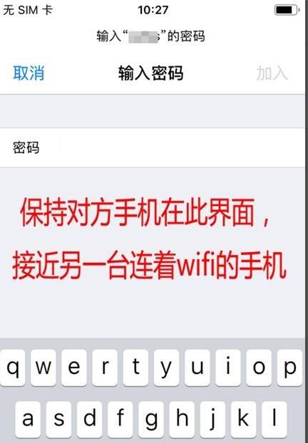 被共享者进入连接此wifi的输入密码界面,然后将两部手机靠近。