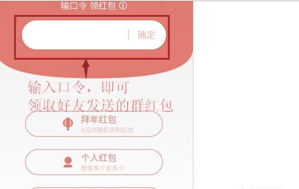 8、如图,我们只要在上方输入口令处,输入好友确定的红包口令,并且确保我们自己在他确定的谁可领取的红包名单中,我们就能领取红包啦!