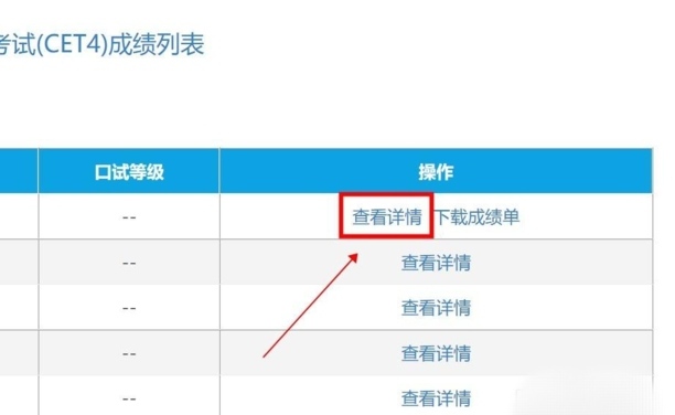 在本人的四六级英语成绩列表中,点击右侧的“查看详情”就可以看到成绩了