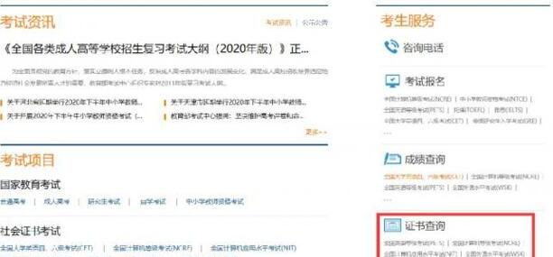 找到右侧【考生服务】-【证书查询】,点击【...】查看更多