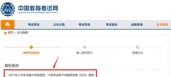 点击“上半年全国大学英语四、六级考试电子成绩报告单(证书)查询”