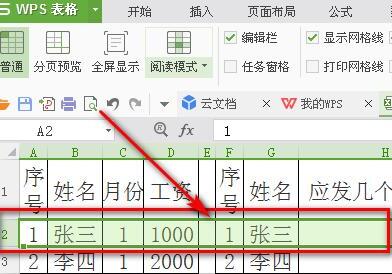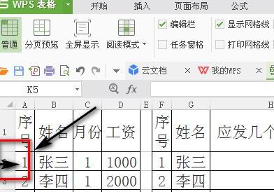4、将鼠标光标移动到需要冻结前几行的下一行,如想要冻结第一行,就把鼠标光标移动到第二行的首段数字2处(这个数字2没有任何办法修改,只能隐藏和显示)。