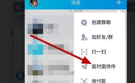 第一:首先我们打开qq,在qq右上角“+”菜单中点击“面对面快传”选项。