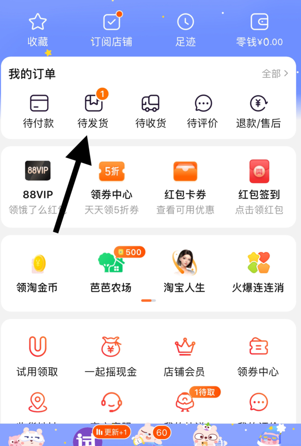 大家都在问1.打开淘宝,点击我的淘宝-待发货