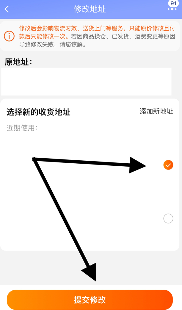 5.跳转回修改地址页面后,选择刚才的地址,点击提交修改图标,就可以改为不同的地址了。