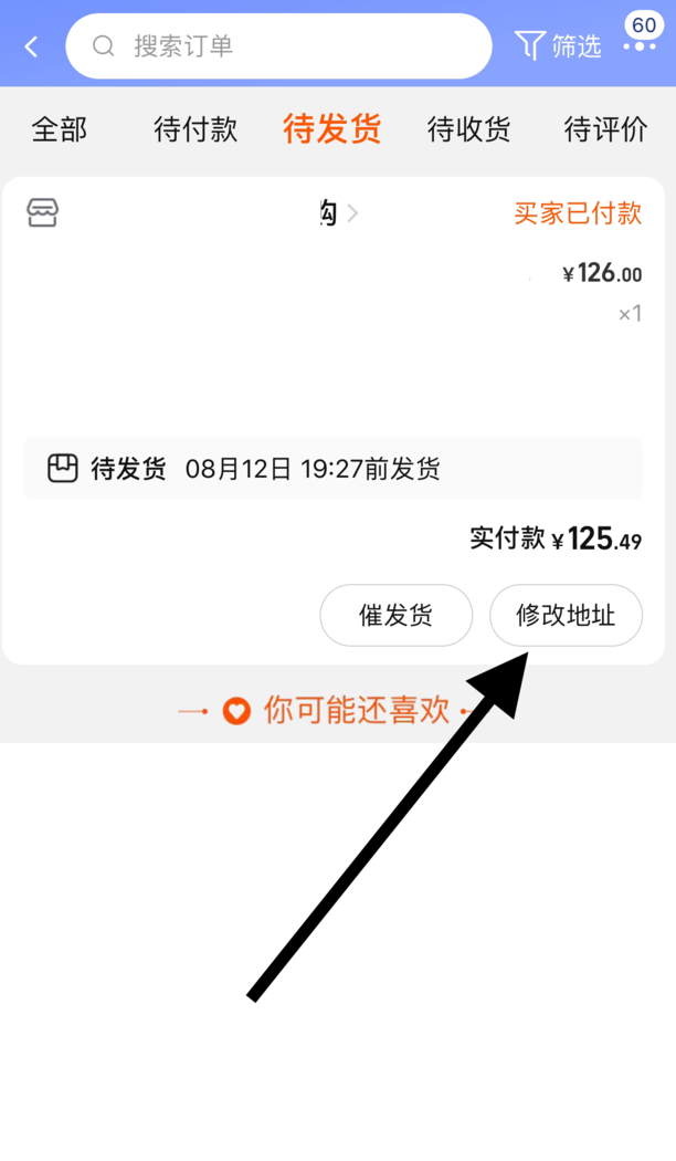 2.进去待发货页面,找到想要更改不同地址的订单,点击修改地址图标