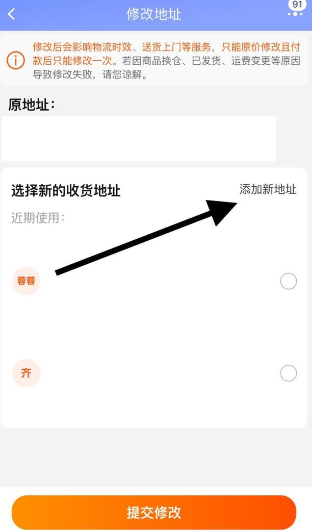 3.进去修改地址页面,点击 添加新地址 选项