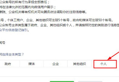 第二:在可供选择的注册类型中,点击【订阅号】。