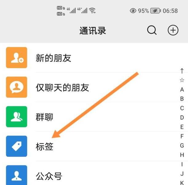 第一:打开手机微信,点击“通讯录”后,在页面点击“标签”选项;