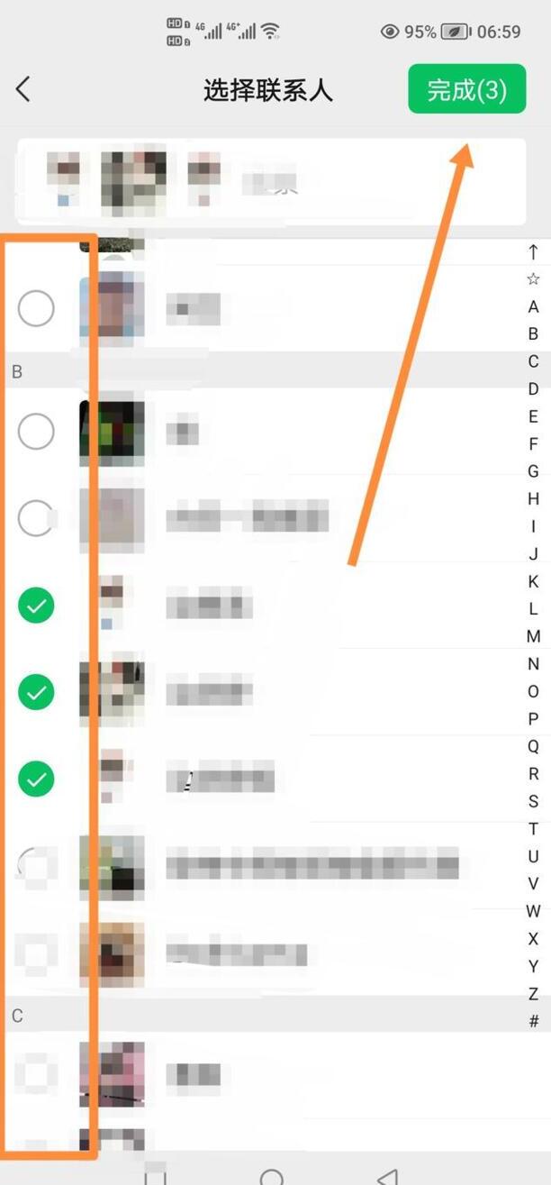 选择联系人,然后点击右上角的完成。