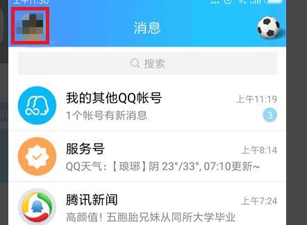 2、进入qq首页后在左上角可以看到我们qq头像,点击qq头像。