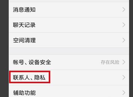 4、在设置界面中找到【联系人、隐私】选项并点击。