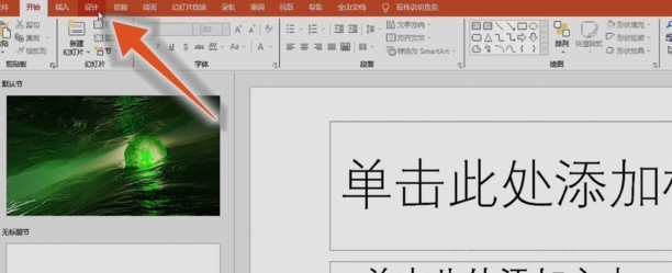 在ppt中,找到界面上方的“设计”选项,点击它进入设计功能区。