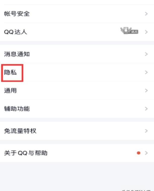 3、在设置页面找到【隐私】,并点击进去。(安卓用户也是同样操作)