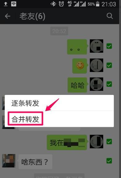 5、在弹出的转发选项中,选择第二项“合并转发”功能。如图所示: