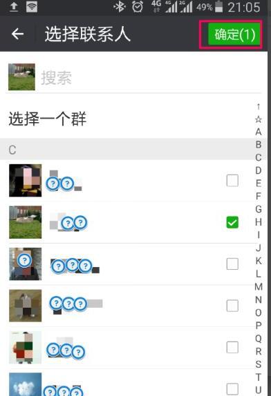 7、选择想要发送的好友,点击右上角“确定”按扭。如图所示: