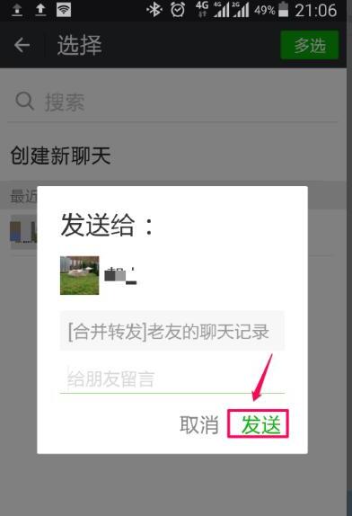 8、最后,点击“发送”按扭就可以发送消息记录了。如图所示: