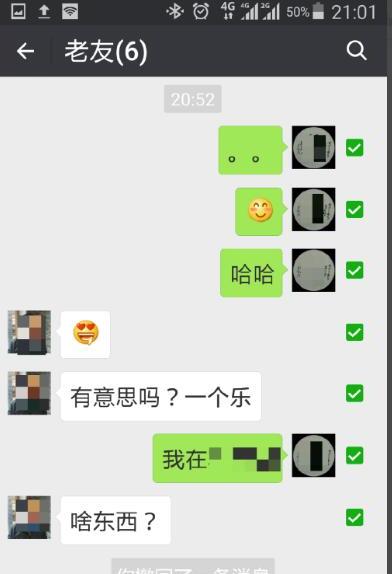第四:这样在每条消息最右侧都出现了一个复选框,把想要转发的聊天记录进行勾选。