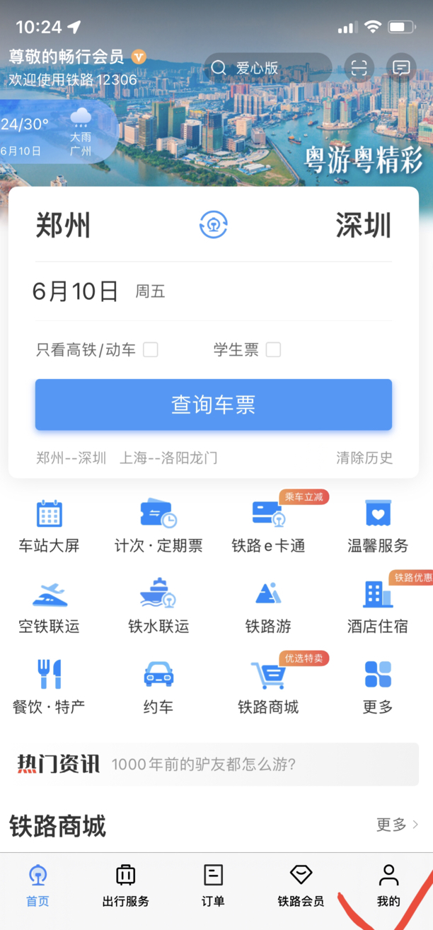 第二:进入12306首页后,点击左下角“我的”按钮。