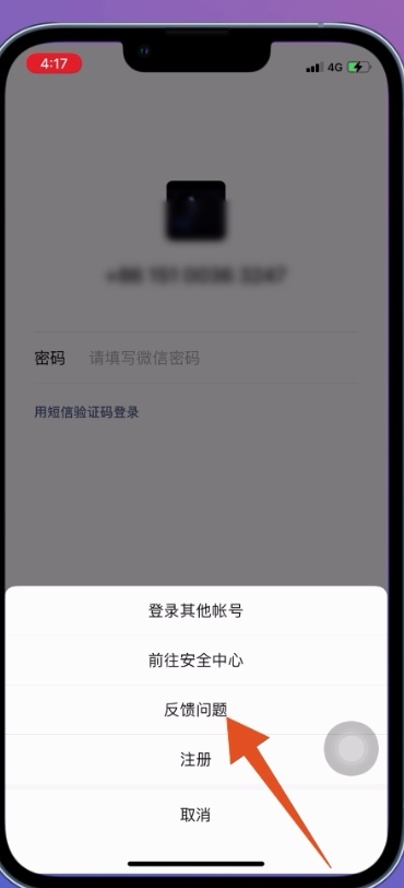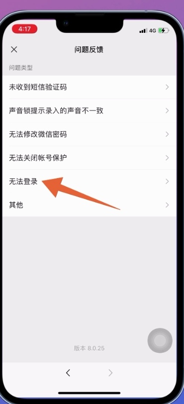 页面翻转选择无法登录这一选项点击打开,翻转进入问题反馈页面。