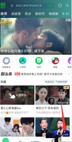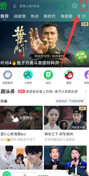 首先,我们打开手机上的爱奇艺APP,进入首页之后,可以看到页面上有一个“+”的图标,大家点击即可。