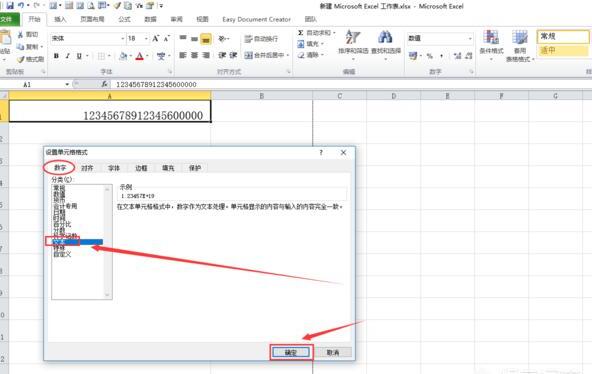 第三:在弹出的设置弹窗中,点击数字——文本,点击确定即可。