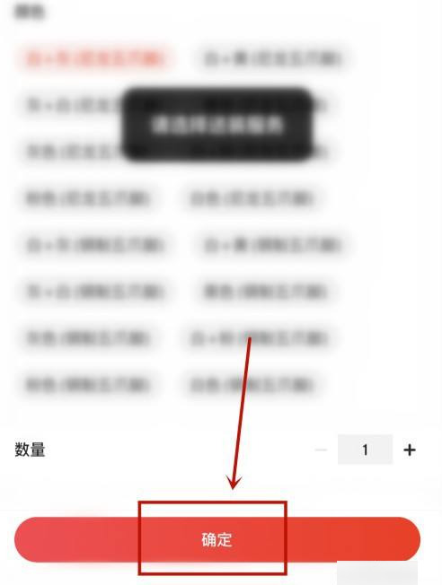 3、在详情页面选择要购买的类型及数量,点击【确定】。